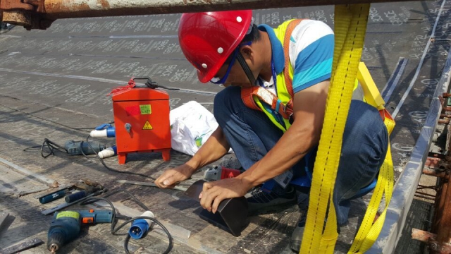 在安装操作过程中,所有设备均需通过第三方安全主管部门检查并贴绿标,包括电箱、手电钻,切割机等。施工现场设备的插头均使用安全等级高级别的防爆插头。虽然不是类似煤矿等具有易燃易爆气体的场所,但是防爆插头的使用能避免危险事故的发生,为现场增加安全屏障。
