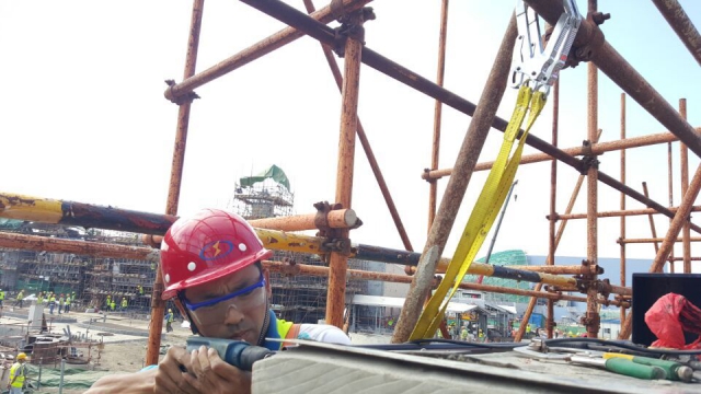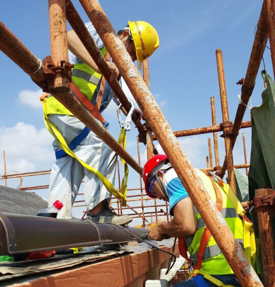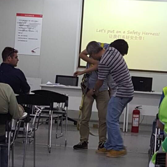 施工现场登高必须佩带安全带,确保安全设施都齐全后才能进行高空作业。为提高安全意识,振协集团开展了高空作业安全培训,主要内容有安全带的正确使用以及高空作业需要注意的安全问题。开展培训的目的不仅在于传授安全技能,更为重要的是时时刻刻提高员工的安全意识。