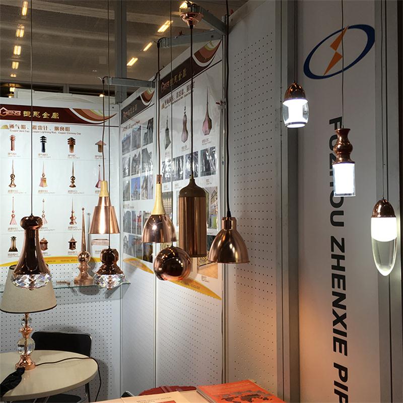 振协在法国建材展上展出三大系列产品:金属落水系列,室外铜装饰系列以及新款的铜灯饰品系列。